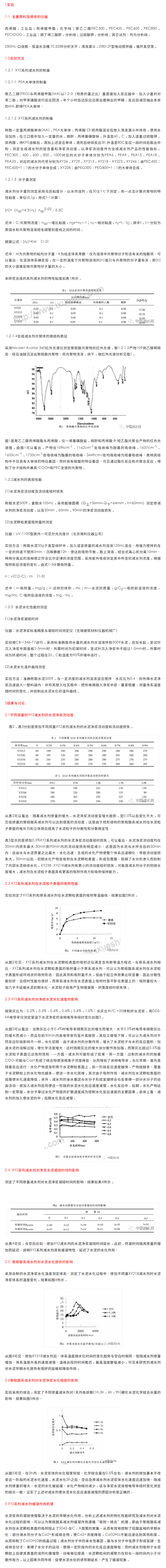 聚羧酸系减水剂是一种梳形结构阴离子表面活性剂.主链为聚丙烯酸的疏水链段.亲水基为羧基、磺酸基、羟基等。许多研究表明聚羧酸系减水剂对水泥水化过程的作用与其吸附性、带电性、表面活性等有重要联系。由于水泥水化体系和硬化作用机理的复杂性.聚羧酸系减水剂对水泥水化过程的微观影响规律至今尚未清楚.聚羧酸系减水剂的缓凝特性将对混凝土性能产生重要影响,在夏季炎热地区、高温环境下施工时,混凝土很容易因为水化加快而硬化、失去流动性,导致施工困难.掺加聚羧酸系减水剂可以很好地控制坍落度损失及混凝土的凝结时间。同时减水剂延缓凝结速度和降低硬化过程中的温升.可以避免大体积混凝土内部温度不断上升而容易产生裂缝.
