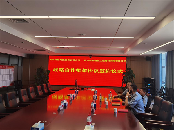 当日下午16:00,在昌吉州国有资产投资经营集团有限公司大厦A座14楼会议室,昌吉州交投集团副总经理、昌吉州城商投贸易有限公司董事长李超,业务经理黄立民、张朕雷,综合部长钱丽与圣新合集团董事长邢效斌、集团常务副总王智慧、昌吉公司总经理赵伟、昌吉公司法务解永新共同出席了本次签约仪式。签约仪式由昌吉州交投集团副总经理、昌吉州城商投贸易有限公司董事长李超主持。